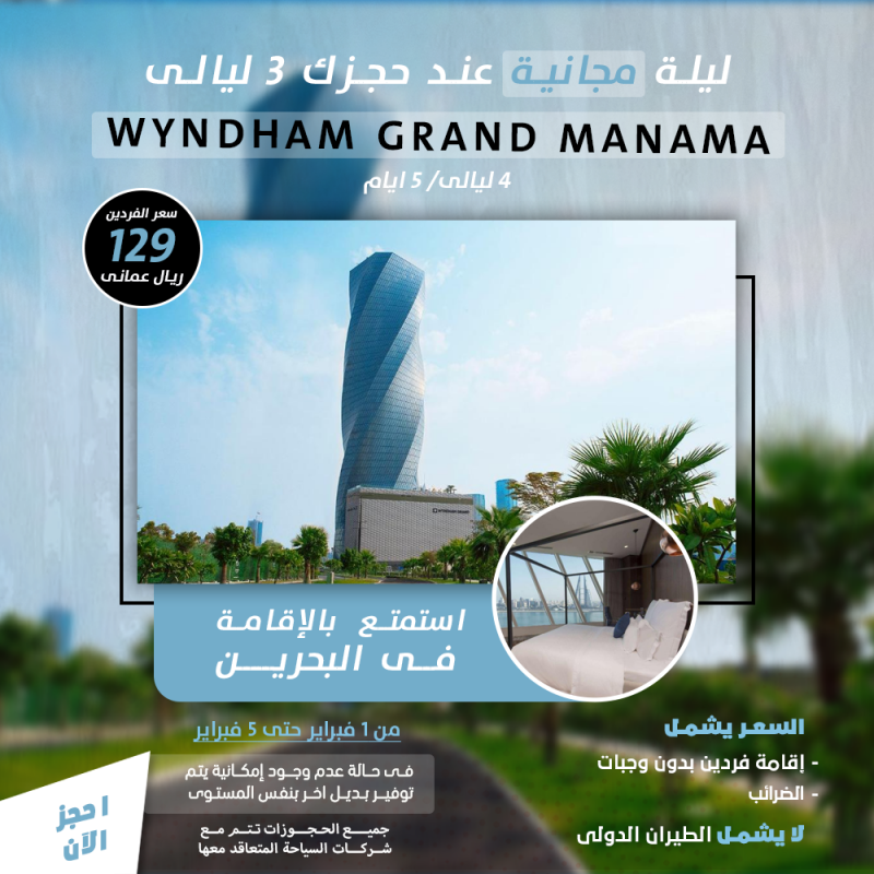 Best Saleليلة مجانية عند حجزك 3 ليالي ليالي5/4أيام السعر يشمل إقامة فردين بدون وجبات الضرائب لا يشمل الطيران الدولي