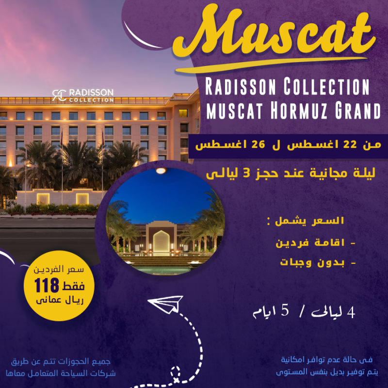 سعر الفردين 178 ريال عماني السعر يشمل اقامة فردين بدون وجبات