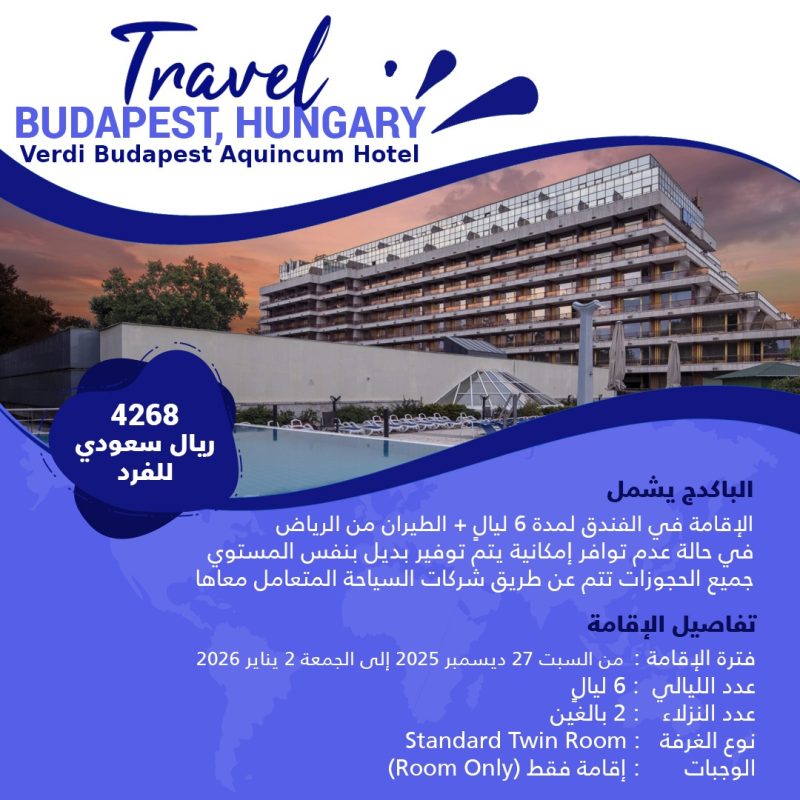 السعر 3315 ريال سعودى 2/1/2026 الإقامة من 27/12/2025 إلى – شامل الطيران الدولي من الرياض إلي فينا و من فينا إلي الرياض في حالة عدم توفر إمكانية يتم توفر بديل بنفس المستوي جميع الحجوزات تتم عن طريق شركات السياحة المتعامل معها