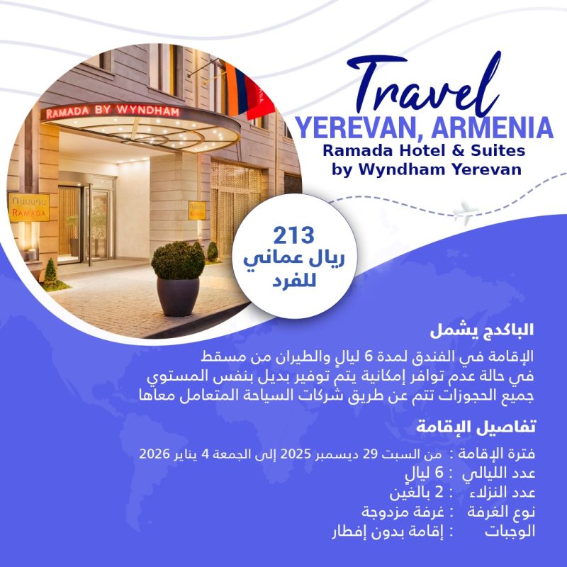 السعر 213 ريال عماني للفرد الباكدج يشمل الإقامة في الفندق لمدة 6 ليال والطيران من مسقط في حالة عدم توافر إمكانية يتم توفير بديل بنفس المستوي جميع الحجوزات تتم عن طريق شركات السياحة المتعامل معاها تفاصيل الإقامة فترة الإقامة : من السبت 29 ديسمبر 2025 إلى الجمعة 4 يناير 2026 عدد الليالي : 6 ليال […]