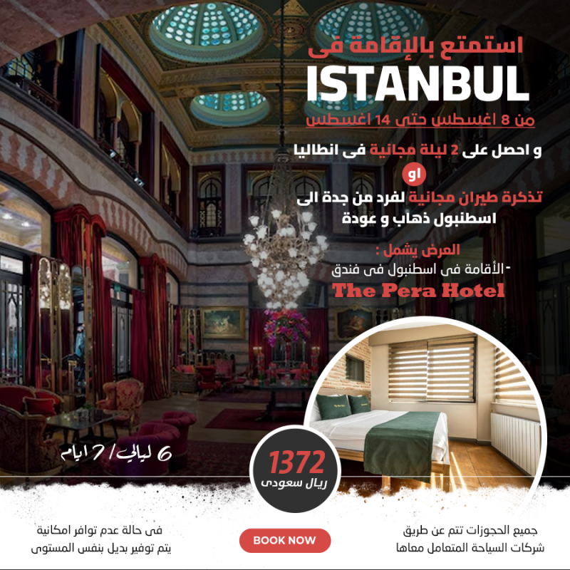 السعر 1372 ريال سعودي العرض يشمل الاقامة في اسطنبول في فندق The Pera Hotel