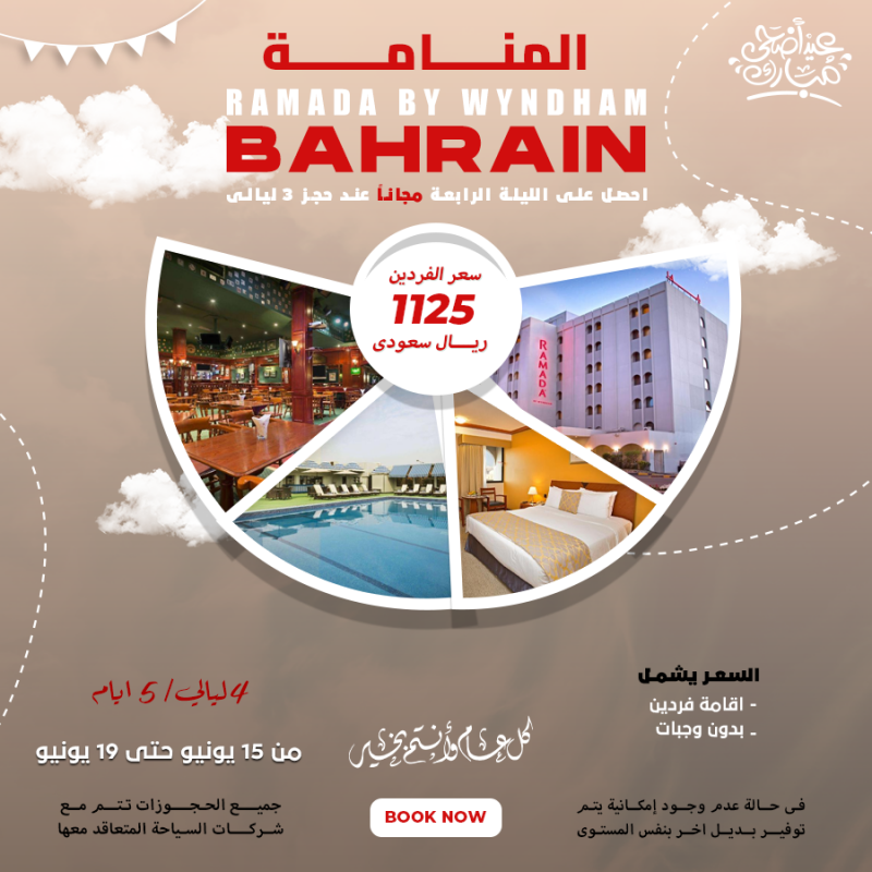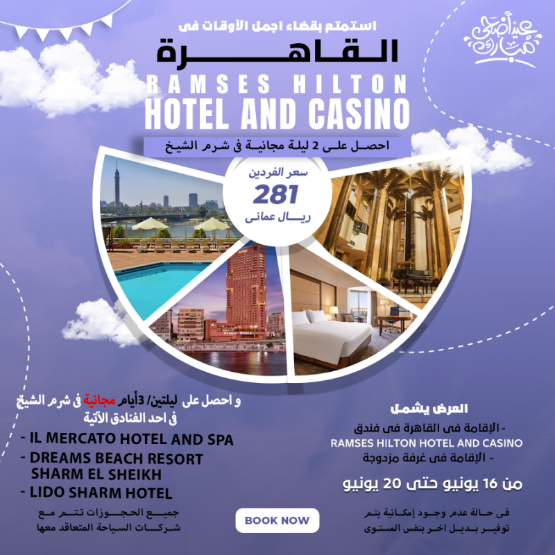 سعر الفردين 281 ريال عماني العرض يشمل الاقامة في غرفة مزدوجة من يوم 16 يونيو حتي 20 يونيو
