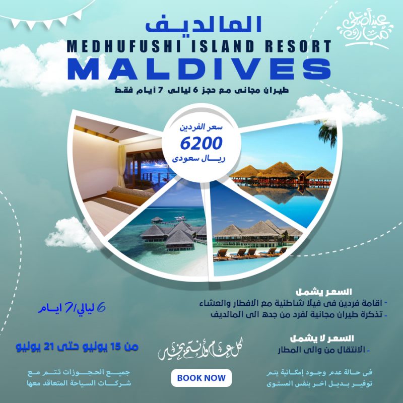 سعر الفردين 435ريال عماني السعر يشمل اقامة فردين في فيلا شاطئية مع الافطار والعشاء تذكرة طيران مجانية لفرد من جدة الي المالديف