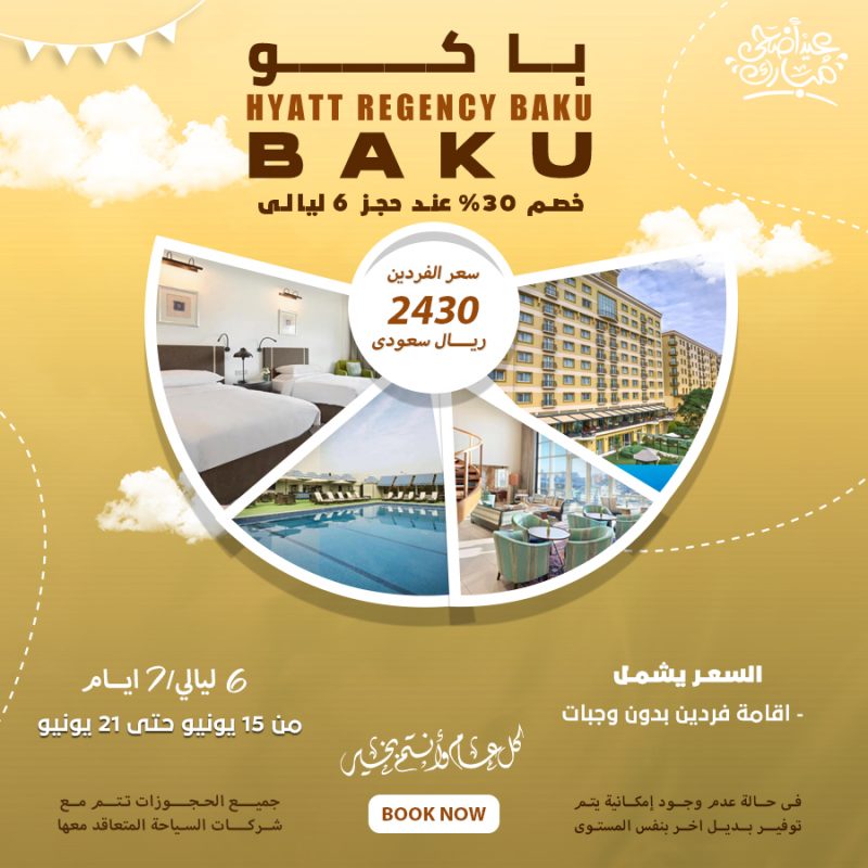 سعر الفردين 2734ريال سعودي العرض يشمل الاقامة في غرفة مزدوجة من يوم 16 يونيو حتي 20 يونيو