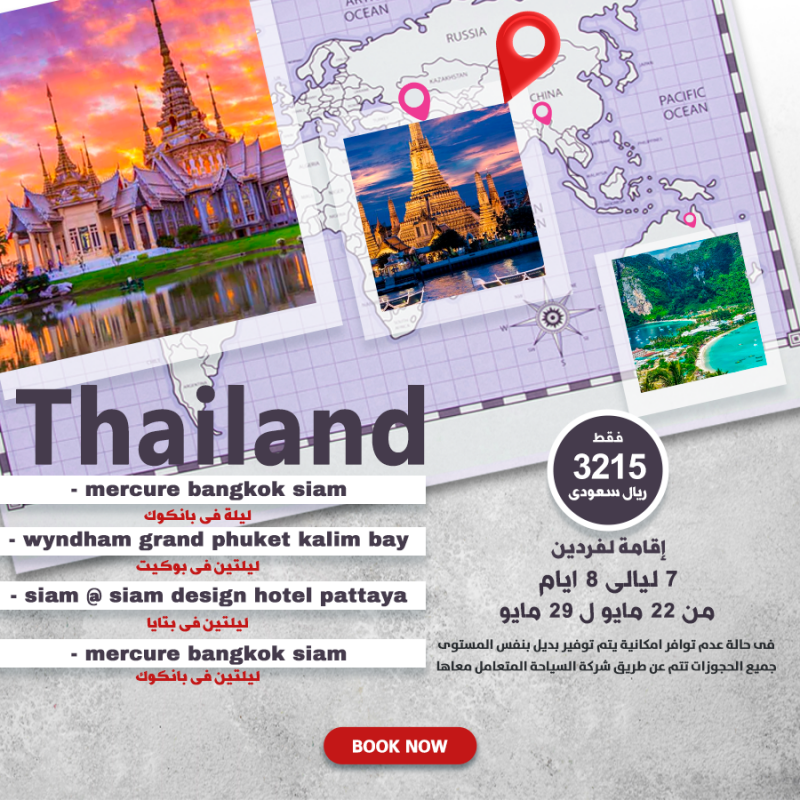 سعر الفردين 3215 ريال سعودي السعر يشمل إقامةلفردين في ليلة في بانكوك ليلتين في بوكيت ليلتين في بتايا ليلتين في بانكوك