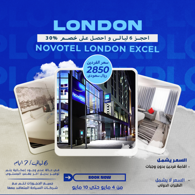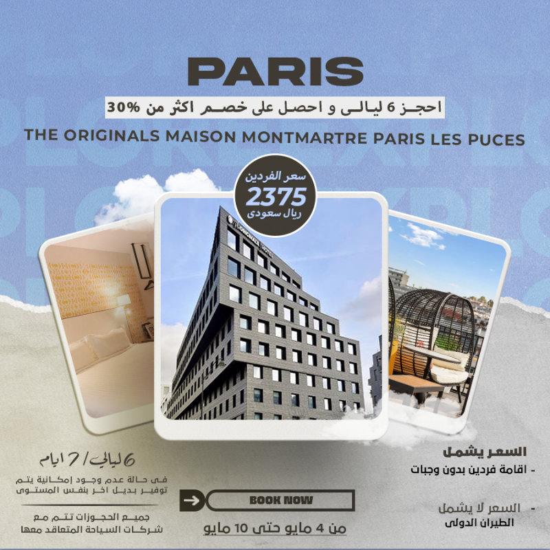 سعر الفردين 2159 ريال سعودي السعر يشمل اقامة فردين مع الافطار من 30 ابريل حتي 5 مايو