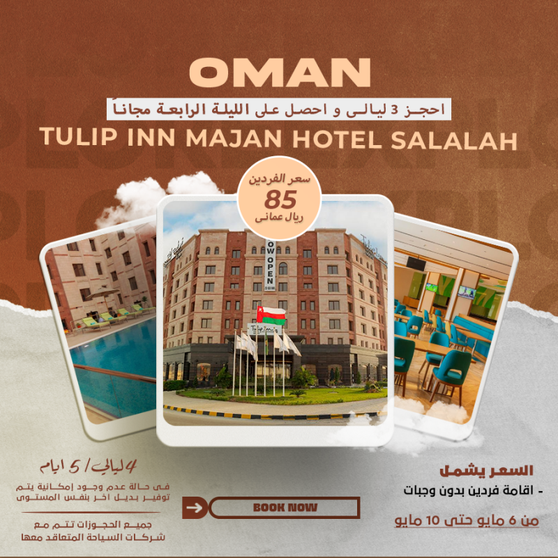 سعر الفردين 222 ريال عماني السعر يشمل اقامة فرددين مع الافطار من 30 ابريل حتي 5 مايو