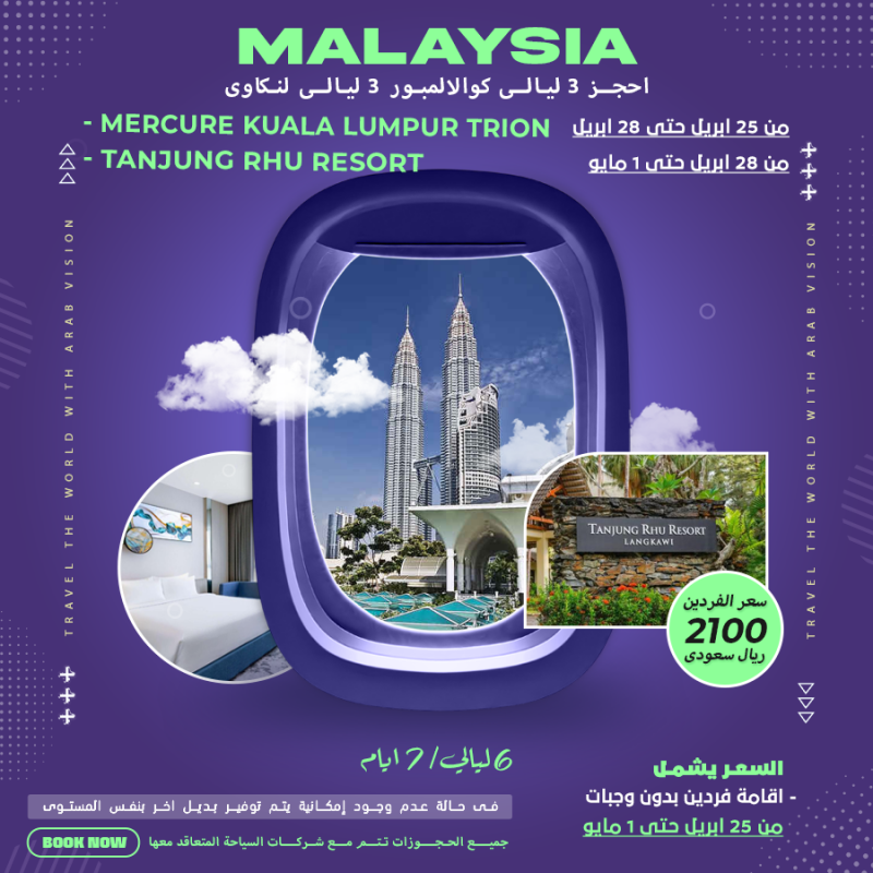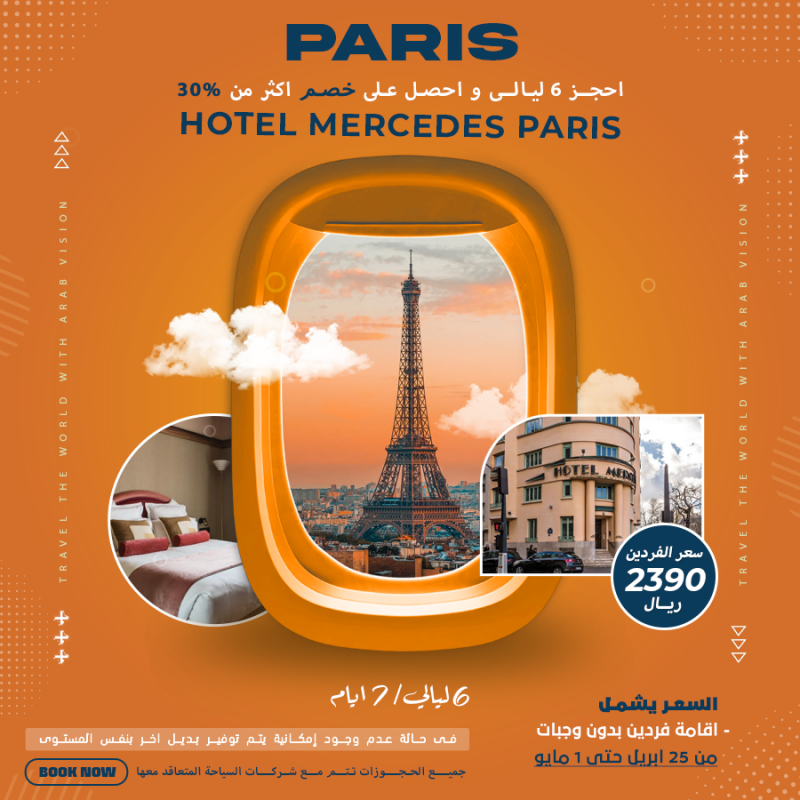 سعر الفردين 2390 ريال سعودي السعر يشمل اقامة فردين بدون وجبات من 25 ابريل حتي 1مايو
