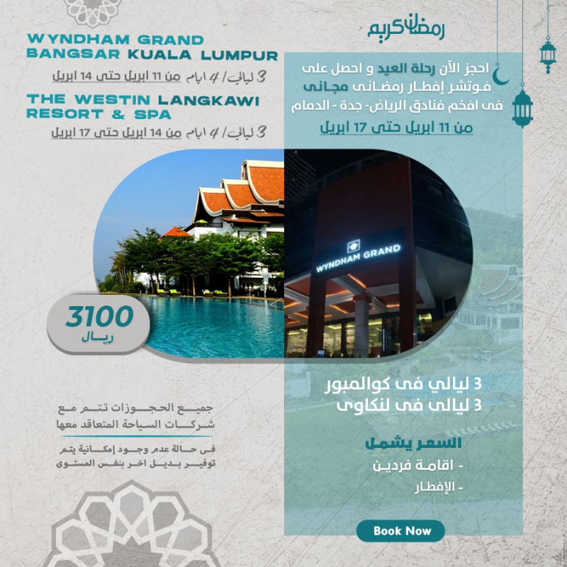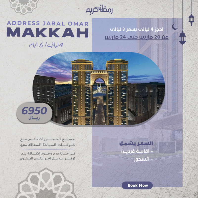 احجز 4 ليالي بسعر 3 ليالي السعر يشمل اقامة فردين السحور