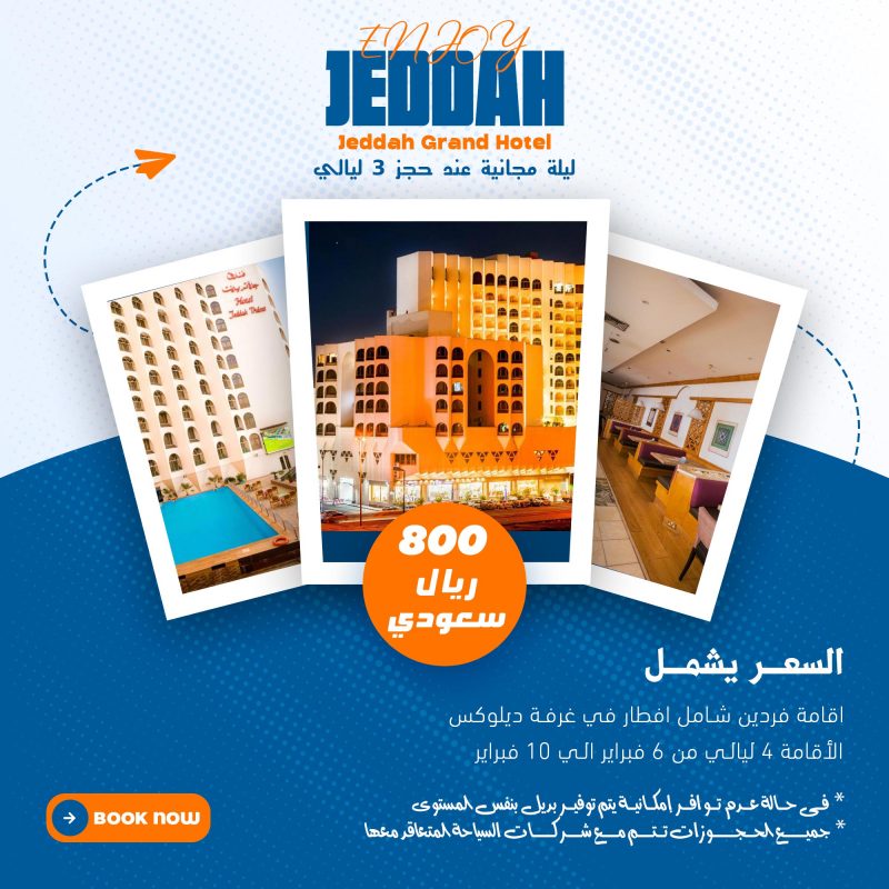 السعر 800 ريال سعودي اقامة فردين شامل الافطار في غرفة ديلوكس الاقامة 4 ليالي من 6 فبراير الي 10 فبراير
