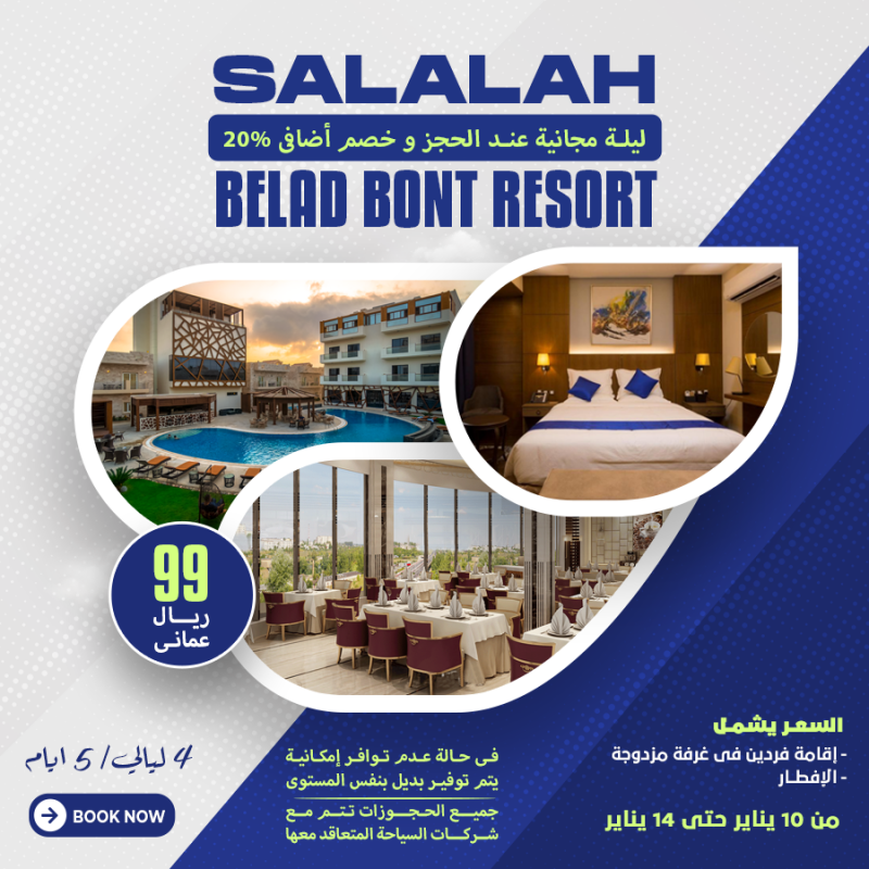 السعر 99 ريال عماني السعر يشمل إقامة فردين في غرفة مزدوجة الافطار
