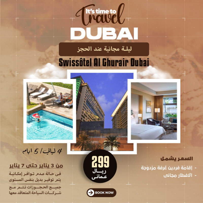 السعر 160 ريال عماني السعر يشمل إقامة الفرد في غرفة مزدوجة premium twin room الافطار الاقامة من 9 يناير حتي 16 يناير