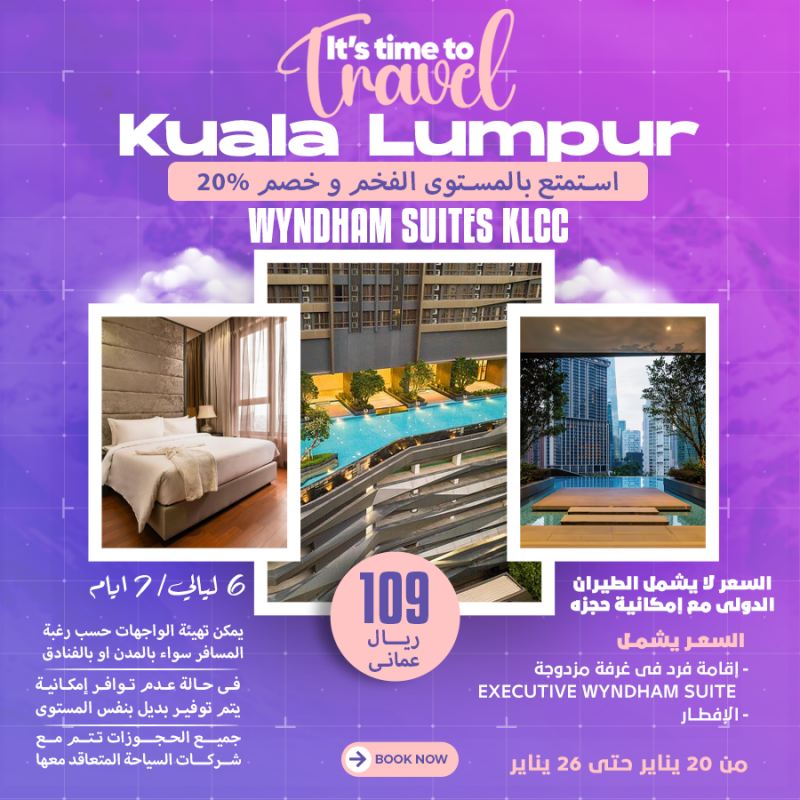 سعر الفرد 109ريال عماني السعر يشمل اقامة فرد في غرفة مزدوجة executive wyndham suite الافطار