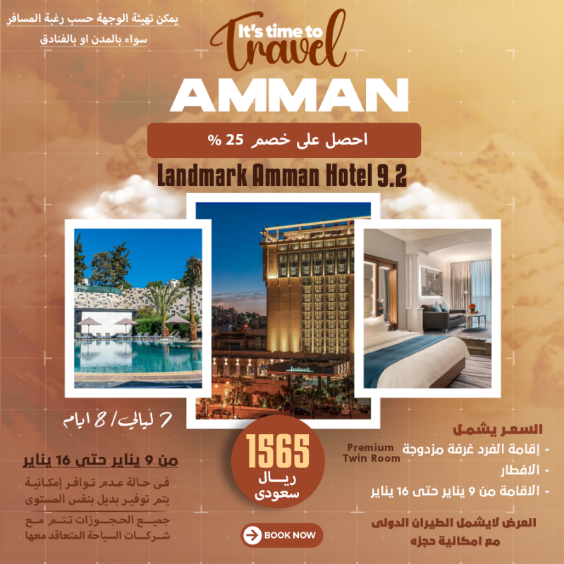 سعر الفردين 2605 ريال سعودي السعر يشمل (الإقامة للفرد في الغرفة المزدوجة (شامل كليا إفطار_غداء_عشاء_مشروبات السعر لا يشمل الطيران الدولي مع امكانية حجزه