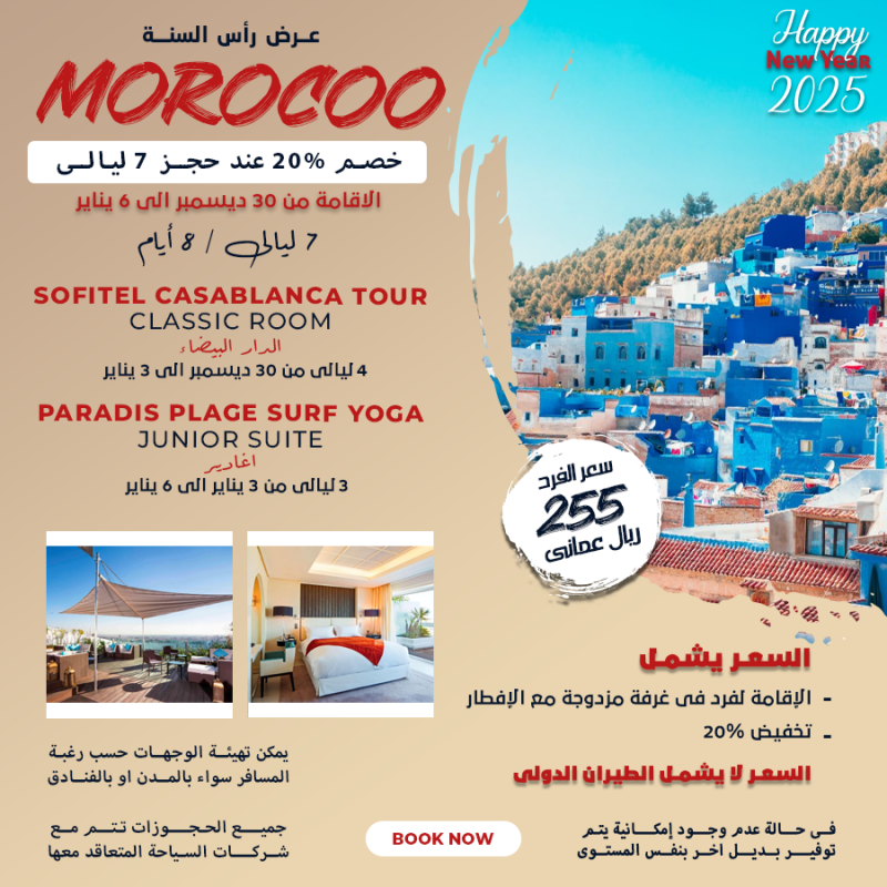 السعر 255ريال عماني السعر يشمل الإقامة لفرد في غرفة مزدوجة مع الإفطار تخفيض %20