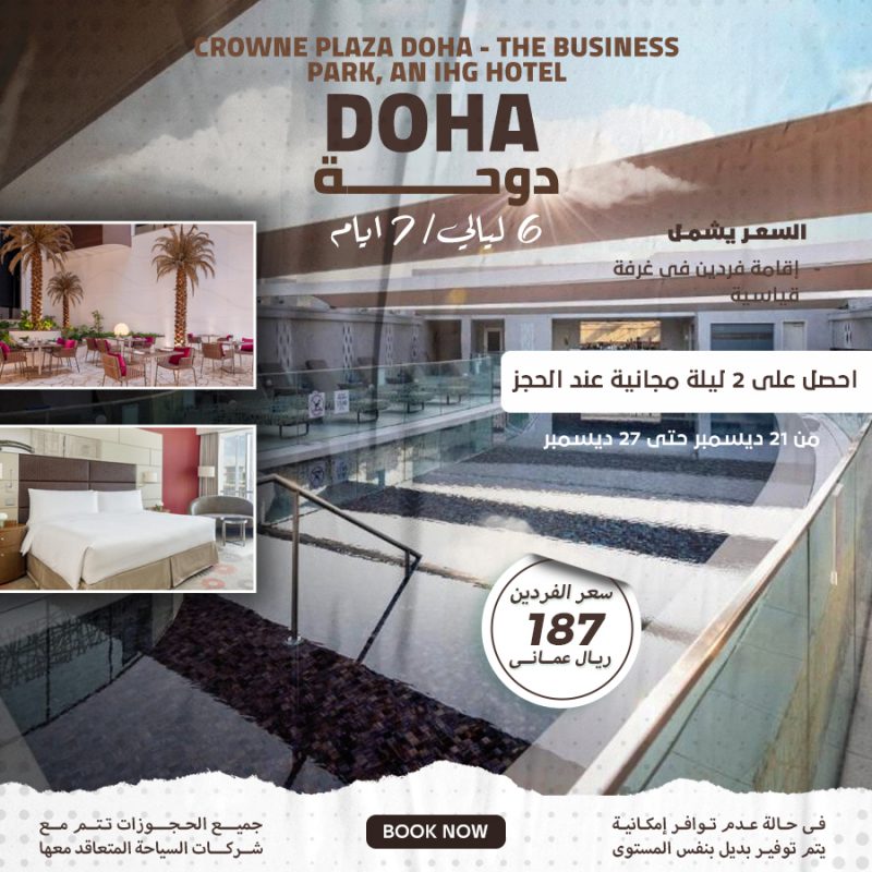 سعر الفردين 187 ريال عماني السعر يشمل إقامة فردين في غرفة قياسية