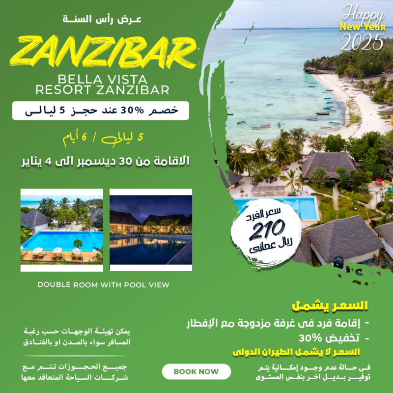 سعر الفرد 210 ريال عماني السعر يشمل إقامة فرد في غرفة مزدوجة مع الإفطار تخفيض% 30 السعر لا يشمل الطيران الدولي
