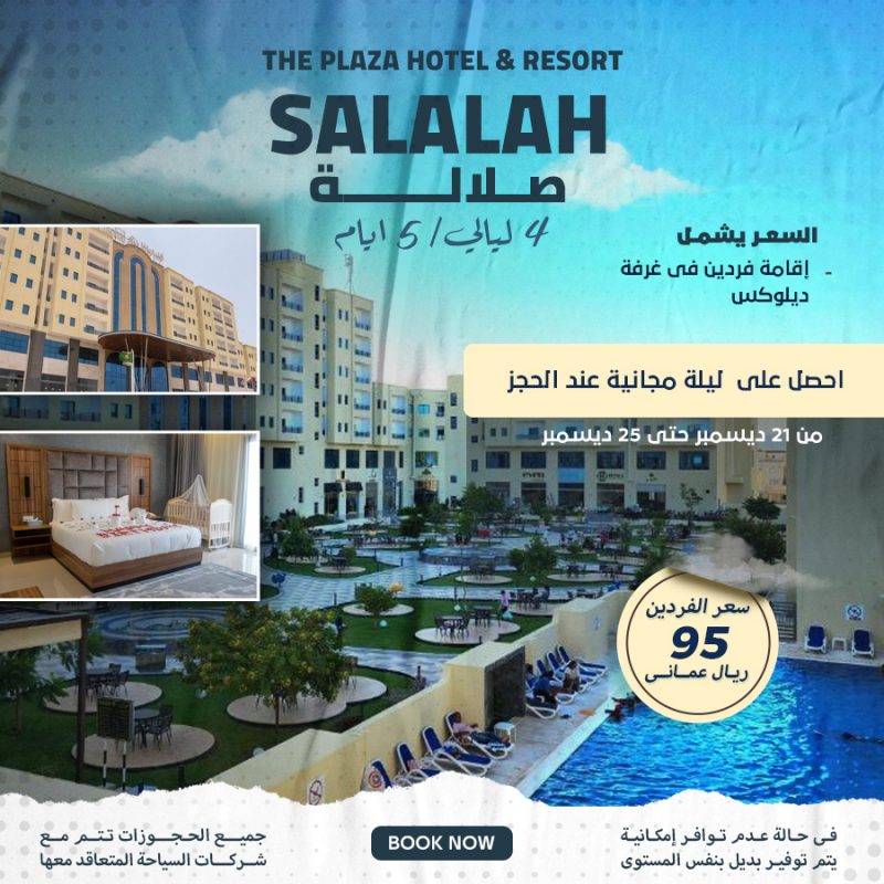 سعر الفردين 95 ريال عماني السعر يشمل إقامة فردين في غرفة ديلوكس