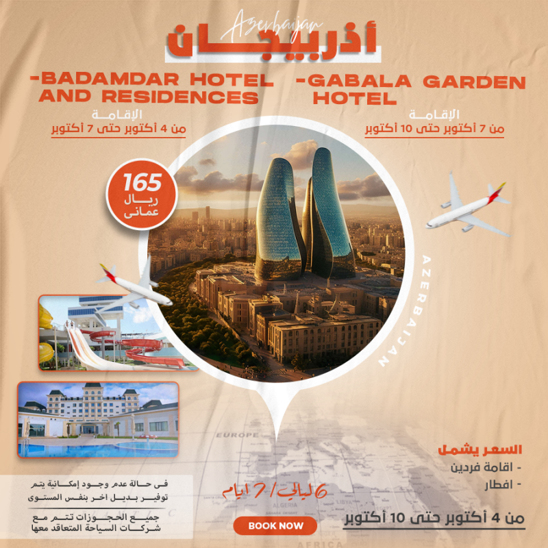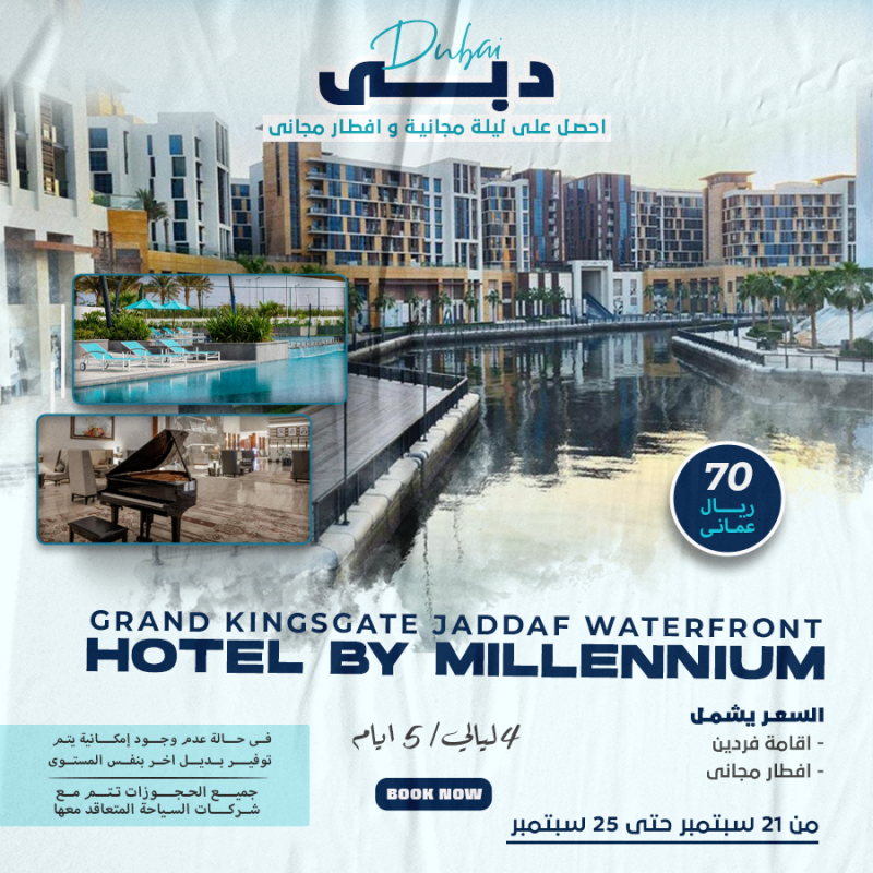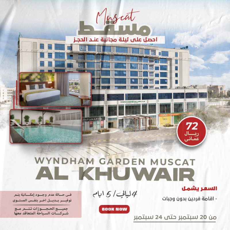 احصل علي ليلة مجانية عند الحجز ريال عماني 95 السعر يشمل اقامة فردين بدون وجبات