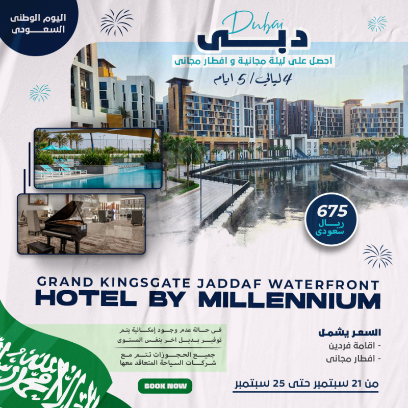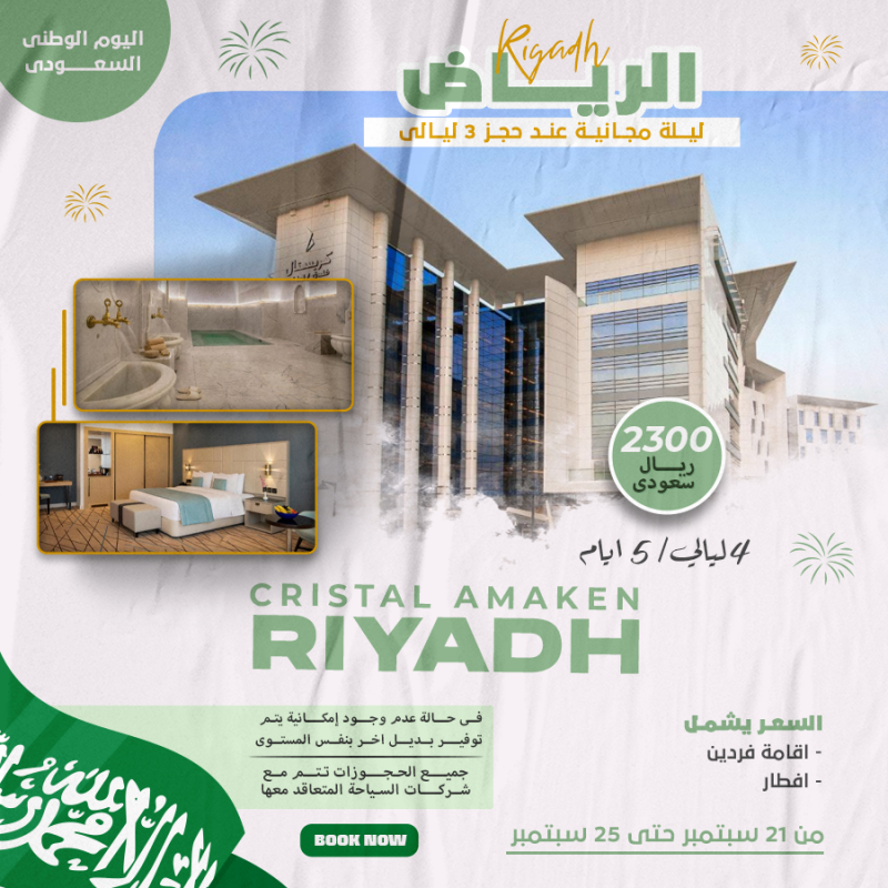 Saudi National Day Offers السعر 675ريال سعودي السعر يشمل اقامة فردين افطار مجاني