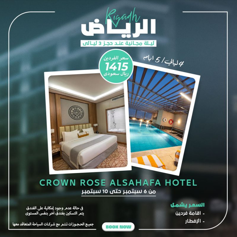 سعر الفردين 3750 ريال سعودي السعر يشمل اقامة فردين في غرفة مزدوجة