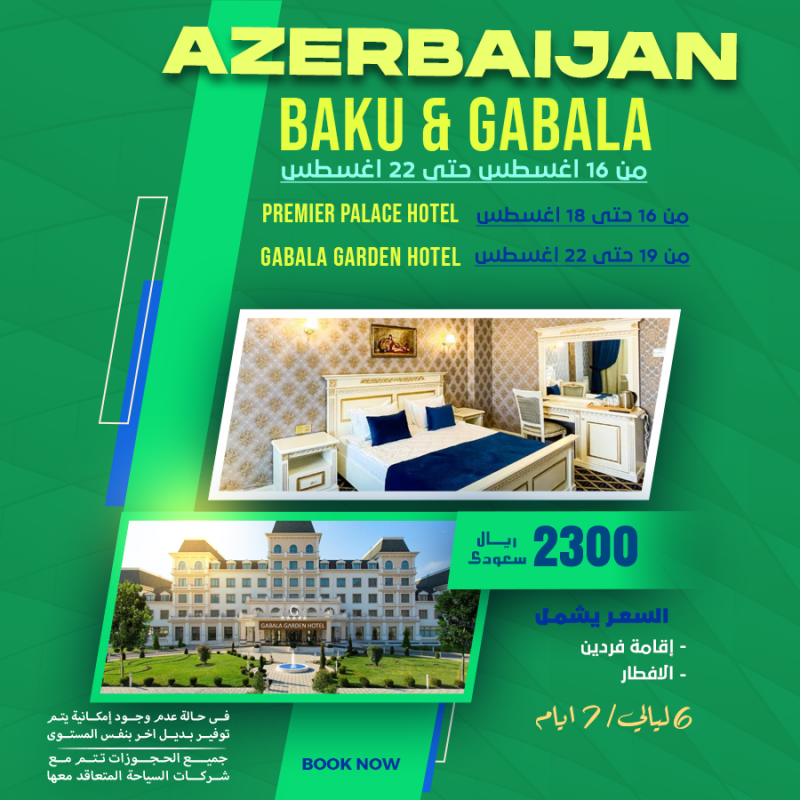 السعر 3775 ريال سعودي السعر يشمل اقامة فردين بدون وجبات