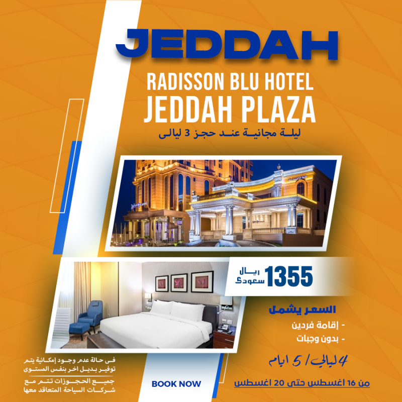 السعر 1355 ريال سعودي السعر يشمل إقامة فردين بدون وجبات
