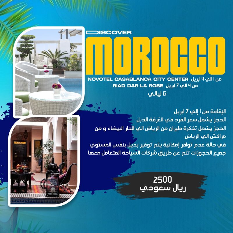 تذكرة طيران من الرياض الي الدار البيضاء و من مراكش الي الرياض