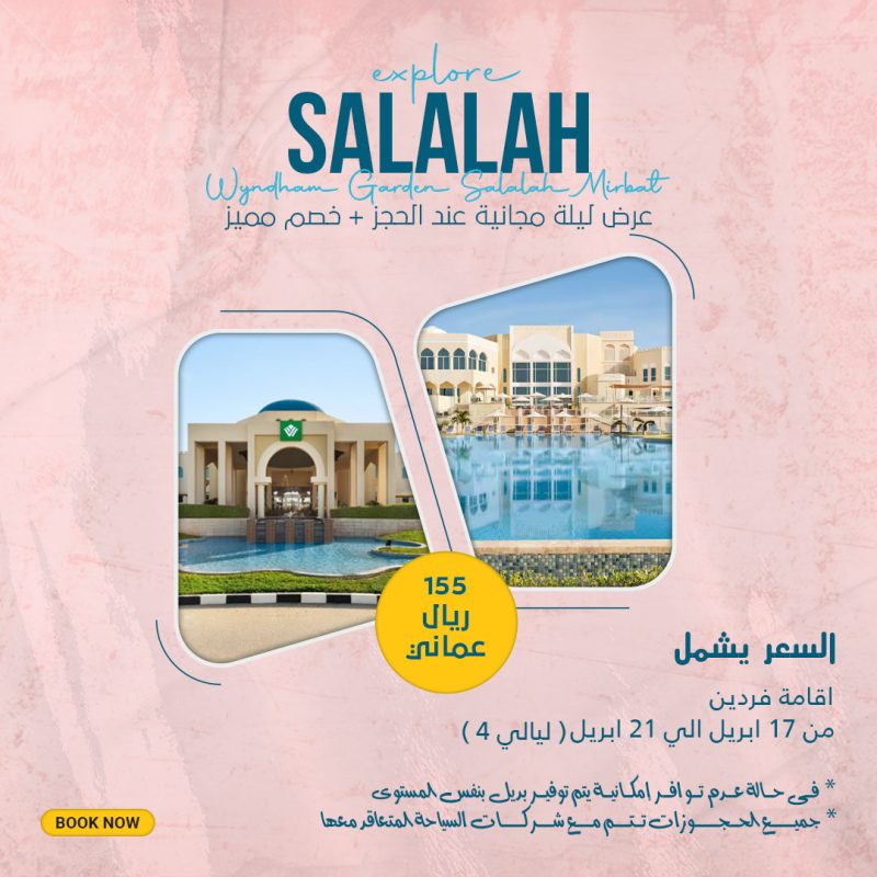 السعر 155ريال عماني السعر يشمل إقامة فردين (من 17 ابريل الي 21 ابريل(4 ليالي
