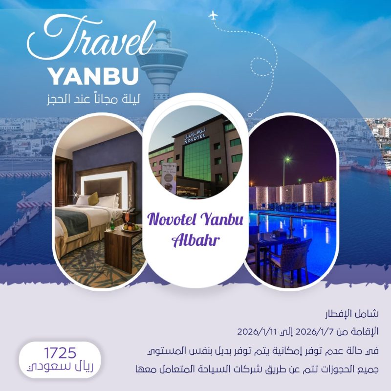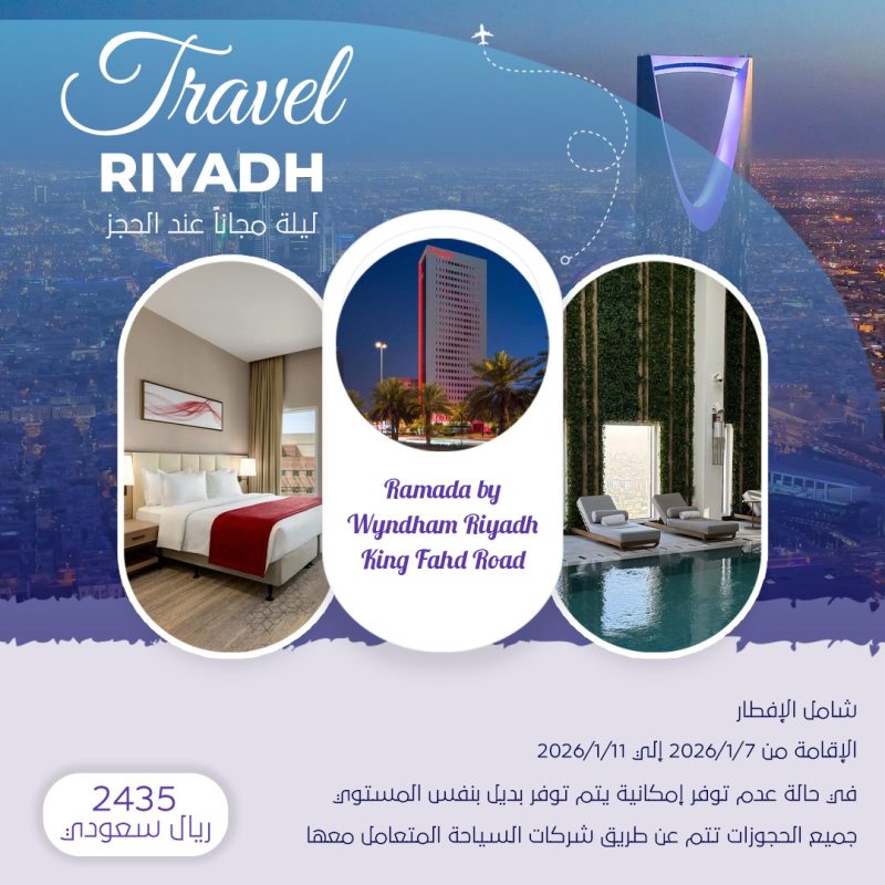 السعر 2435 ريال سعودى شامل الإفطار الإقامة من 2026/1/7 إلي 2026/1/11 فى حالة عدم توافر إمكانية يتم توفير بديل بنفس المستوي جميع الحجوزات تتم عن طريق شركات السياحة المتعامل معها