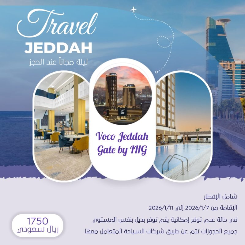 السعر 1750 ريال سعودى شامل الإفطار 2026/1/11 الإقامة من 2026/1/7 إلى في حالة عدم توفر إمكانية يتم توفر بديل بنفس المستوى جميع الحجوزات تتم عن طريق شركات السياحة المتعامل معها