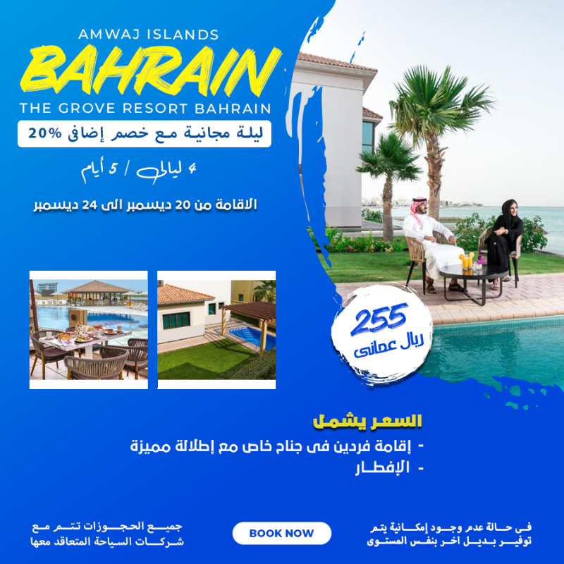 السعر 255 ريال عماني السعر يشمل إقامة فردين في جناح خاص مع إطلالة مميزة الافطار