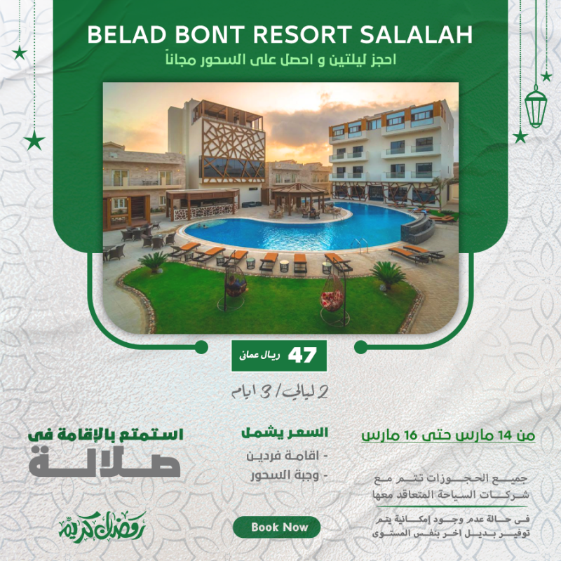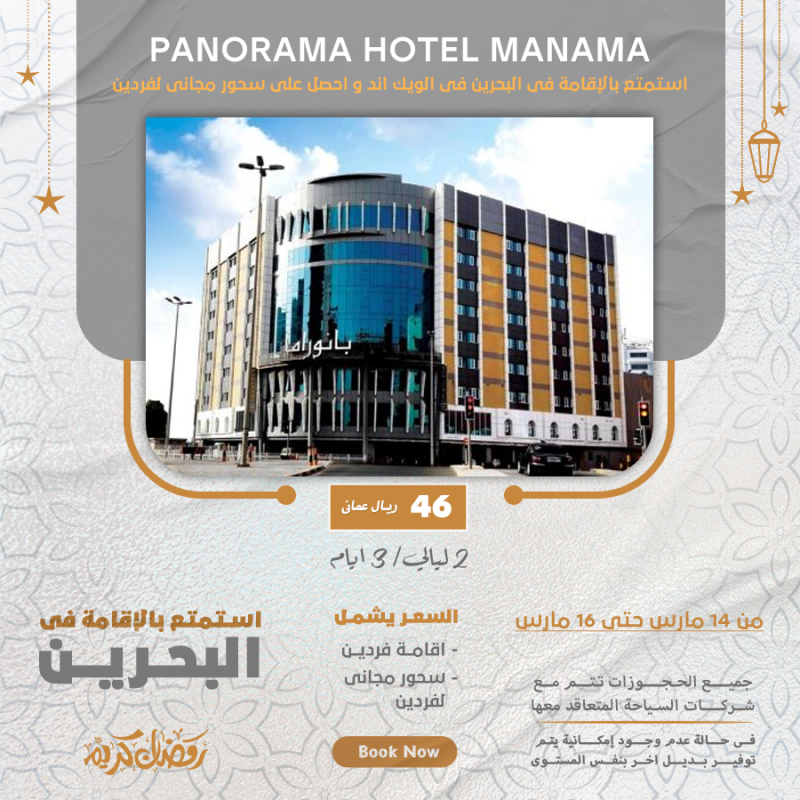 استمتع بالاقامة في مسقط في الويك اند واحصل علي سحور مجاني لفردين خلال فترة الاقامة السعر يشمل اقامة فردين سحور مجاني لفردين