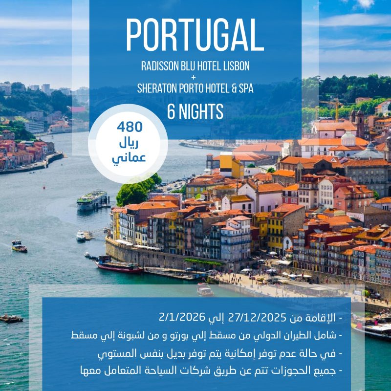 شامل الطيران الدولي من مسقط إلي بورتو و من لشبونة إلى مسقط