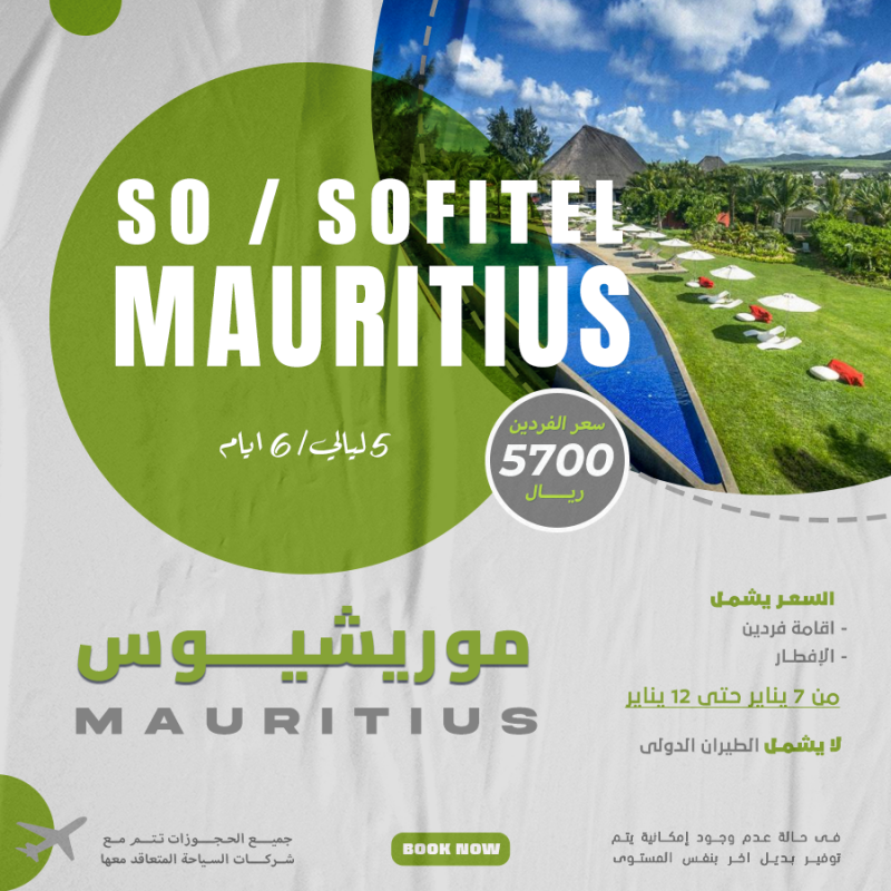 Best Saleso/ sofitel mauritius احجز الان واستمتع بالعروض والخصومات السعر يشمل : اقامة الفردين بالافطار من 7 يناير حتي 12 يناير لا يشمل الطيران الدولي